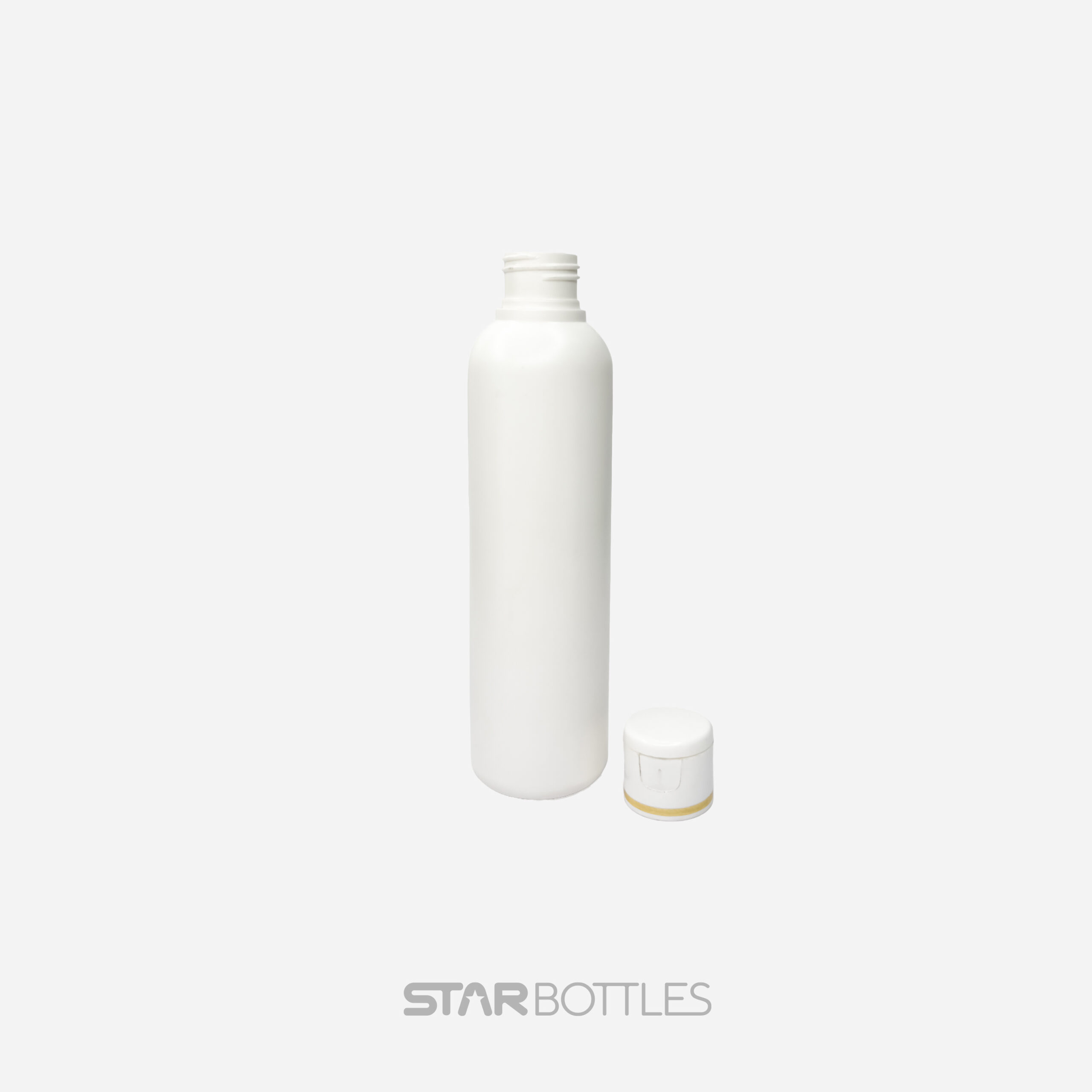 / 200 ml Round HDPE Bottle White with White Gold Foiling FTC – 25 Pcs